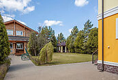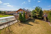 Благодаря большому количеству взрослых деревьев участок совершенно приватный, соседей не видно. Построена дровяная баня из бревна с гостевыми комнатами, бассейн с выходом на участок и беседка с мангальной зоной. Установлено парковое освещение и автоматические ворота. Все дорожки вымощены брусчаткой. Сделан дренаж.