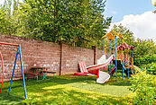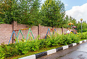 Внутреннее пространство поселка грамотно организовано, что создает все условия для отдыха на свежем воздухе: прогулки по парковой зоне вдоль клумб и изящных фонарей, оборудованные детские площадки.