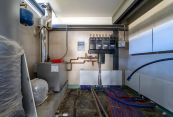 Первый этаж: прихожая, гардеробная, ванная, постирочная, котельная, холл, кухня основная, столовая-гостиная, техническая кухня;