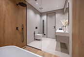 В таунхаусе выполнена отделка под ключ, где есть все необходимое, начиная от дизайнерской мебели и стильного декора, заканчивая высококлассной техникой.