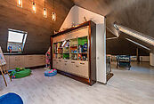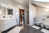 Участок прямоугольный, площадью 21 сотка. По периметру его обрамляет живая изгородь, растут хвойные и фруктовые деревья, есть навес на 2 автомобиля. Все помещения полностью меблированы. Установлена премиальная бытовая техника. Кухня на заказ (Германия), техника Gaggenau (Германия), свет Martini (Италия), система кондиционирования Mitsubishi, газовое оборудование Buderus (Германия).
