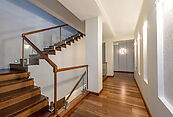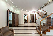 Дом, общей площадью 700 кв.м., построен в английском стиле. Дом - трехэтажный. Облицован клинкерным кирпичом. В доме выполнена дизайнерская отделка. Интерьер оформлен в современном стиле. В каждой комнате предусмотрен санузел. В доме есть кухня-гостинная с камином и выходом на террасу с зоной BBQ. Есть блок для персонала и гараж на два машиноместа. Кухня на заказ (Германия), техника Gaggenau (Германия), свет Martini (Италия), система кондиционирования Mitsubishi, газовое оборудование Buderus (Германия).
