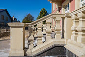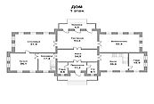 Первый этаж - прихожая, холл, гардеробные, гостевой санузел, гостиная с выходом на террасу, столовая с камином, кухня, библиотека.