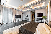 роскошный, словно с обложки глянцевого журнала, женский мастер блок. Здесь все только для НЕЕ: приватная спальня с будуаром, ванная комната с зенитным окном, прямо над ванной, чтобы смотреть на звезды и две гардеробные. А еще два прекрасных детских спальных блока.