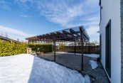 На территории крытая парковка на два автомобиля, установлены автоматические ворота.