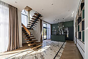 Дом построен по архитектурному и дизайнерскому проекту с использованием современных материалов и технологий. Есть фото и видео всех этапов строительных работ. Панорамное остекление, установлены мультифункциональные стеклопакеты Solar с защитой от ультрафиолетовых лучей. На первом этаже просторная светлая гостиная с кухней-столовой и выходом на террасу. На кухне установлены мебель и техника. Дом оборудован современными системами приточно-вытяжной вентиляции и системой кондиционирования. Установлены теплые водяные полы. Выполнена подготовка к системе "Умный дом" и система защиты от протечек.