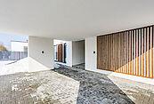 Ремонт завершен в 2025 году и выполнен в современном минималистичном стиле. Планировочное решение позволяют максимально эффективно и функционально использовать все пространство дома, а панорамные окна визуально добавляют пространства. Рядом со входом в дом имеется небольшое подсобное помещение для различного инвентаря или велосипедов.
