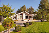 Гостиную с обеденной зоной и кухней, две комнаты с санузлами, сауну и гараж на две машины.