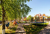 Поселок построен в едином архитектурном стиле, есть 3 концепции домов. Уютный и камерный, он состоит всего из 56 домовладений, каждое из которых прекрасно по-своему. На территории поселка асфальтированные дороги, организованы прогулочные зоны, выполнено качественное озеленение, построена детская площадка. Все централизованные коммуникации: газ, водоснабжение, электричество, водоотведение.