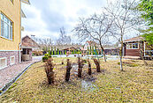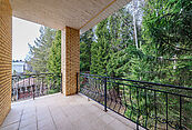 На прилесном участке, общей площадью 18 соток, квадратной формы организовано ландшафтное озеленение и благоустройство, автополив и дренаж. Электричество и газ – центральные, канализация – септик, водоснабжение – скважина.