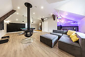 Второй этаж: Мастер-спальня с гардеробной и санузлом, спальня, детская спальня, гардеробная, ванная, игровая зона с камином, с бильярдом и барной стойкой