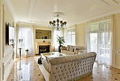 Первый этаж: гостиная с камином, кухня - столовая, кабинет, холл, гардеробная, домашний кинотеатр, постирочная, санузел, терасса - зимний сад.