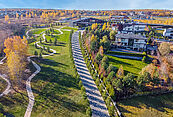 Дома в поселке выполнены в 3 архитектурных стилях, утопающих в зелени леса, создают атмосферу абсолютной приватности, где царит тишина, нарушаемая лишь шелестом листвы и пением птиц, а закрытая территория с круглосуточной охраной гарантирует безопасность и покой.