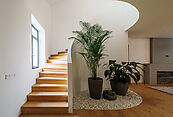 Первый этаж: гардеробная, гостиная, кухня-столовая с выходом на терассу, спальня, санузел с душевой, котельная