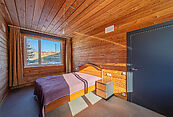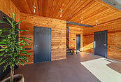 В доме понятная планировка, построен по каркасной технологии, облицован планкеном из лиственницы, внутри стены отделаны также лиственницей. В каждой спальне предусмотрено помещение для гардеробной. Доступ в гараж осуществляется также из дома через бойлерную. С двух сторон дом огибает терраса из импрегнированной сосны.