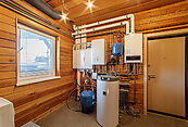 Первый этаж: бойлерная, гараж на два машино-места, кухня-гостиная, спальня, кладовая, санузел;