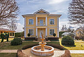 На участке площадью 17,4 соток расположены: дом (200 кв.м) с 5-тью спальнями и дом персонала (250 кв.м) с тремя комнатами, 2-мя гаражами- мойками и цоколем.
