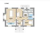 Первый этаж: прихожая, холл, кухня, столовая, спальня, ванная, гардеробная, котельная;