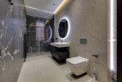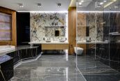 Второй этаж: мастер-спальня с санузлом, душевой и джакузи, гостевая спальня, детская спальня, гардеробная, санузел с ванной и душевой кабиной, санузел с душевой кабиной.