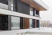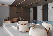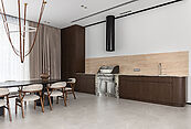 Первый этаж: кухня, кабинет, зона для приёма гостей, гриль‑зона, SPA‑зона с бассейном.