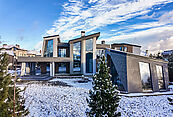 Первый этаж: прихожая, гардеробная, два холла, кухня, столовая, гостиная, спальня с санузлом, кинотеатр, кладовая, два санузла, постирочная, котельная, терраса, зона барбекю, гараж для 4-х автомобилей с квартирой для персонала на втором этаже с отдельным входом, СПА-зона с бассейном, хаммамом, сауной, раздевалкой, террасой и санузлом;