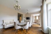 Первый этаж: прихожая, гардеробная, кухня с выходом на большую веранду, столовая, гостиная, каминный зал, гостевая комната, санузел, серверная, техническое помещение, гараж для два автомобилей;