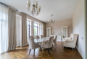 Первый этаж: прихожая, гардеробная, кухня с выходом на большую веранду, столовая, гостиная, каминный зал, гостевая комната, санузел, серверная, техническое помещение, гараж для два автомобилей;