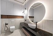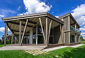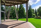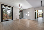 Первый этаж: прихожая, гардеробная, санузел, кухня-столовая-гостиная с выходом на террасу 90м2, постирочная, кабинет, гостевая спальня с санузлом, котельная, кладовая для спортивного и садового инвентаря, навес для авто;