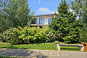 Первый этаж: прихожая, большая гардеробная, гостевой cанузел, кухня-столовая-гостиная с выходом на террасу 90м2, постирочная, кабинет, гостевая спальня с санузлом, котельная, кладовая для спортивного и садового инвентаря, навес для авто;