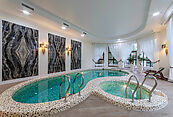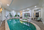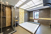 Первый этаж: полноценный SPA-комплекс с бассейном, сауной, тренажерным залом и изолированными апартаментами для персонала (две комнаты, кухня, санузел).