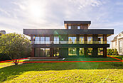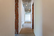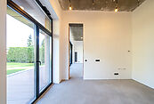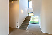 Первый этаж: гардеробная, гостевой санузел, спальня с санузлом, кухня - столовая - гостиная, техническая кухня с кладовой комнатой, постирочная, кабинет/спальня с санузлом, спальня для персонала со своим санузлом