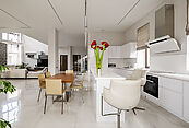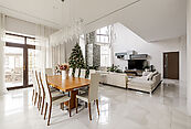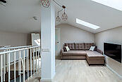 Первый этаж: холл, гостиная со вторым светом и камином, столовая выходом на террасу, кухня, спальня с гардеробной и санузел с ванной, спортзал - игровая, гостевой санузел, техническое помещение