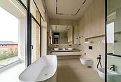 Второй этаж: две спальни, каждая со своей гардеробной и ванной комнатами, детская спальня со своим санузлом, две спальни, каждая со своим санузлом, кухня-столовая, постирочная.