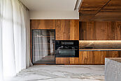 Первый этаж: прихожая, холл, гардеробная, санузел, кухня-гостиная-столовая с выходом на террасу, рабочая кухня, спальня со своей гардеробной и ванной комнатами, гостевая спальня, котельная, кладовая, гараж на два машиноместа.