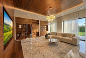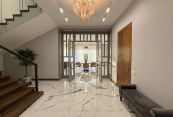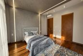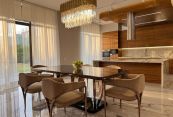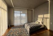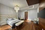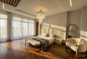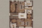 Второй этаж: холл, мастер-спальня с санузлом и гардеробной, балкон, две детские спальни с санузлами и гардеробными.