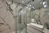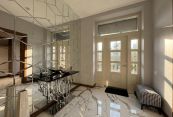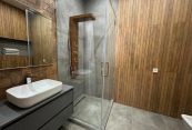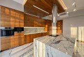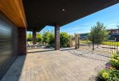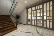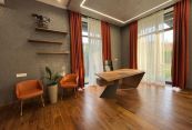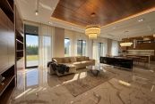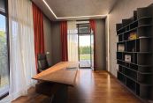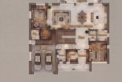 Первый этаж: прихожая, холл, гардеробная, гостиная-кухня-столовая с выходом на террасу, кабинет, санузел, кладовая, котельная, постирочная, гараж для 2-х автомобилей;