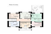 Первый этаж – прихожая, постирочная, санузел, спальня, гостиная, кухня-столовая, терраса, кабинет.