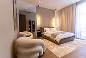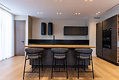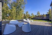 Второй этаж: холл, мастер-спальня с санузлом и гардеробной, две спальни со своими гардеробными и санузлами, спальня с санузлом, выход на эксплуатируемую кровлю с зоной отдыха и барбекю.