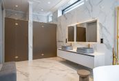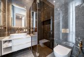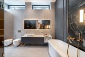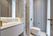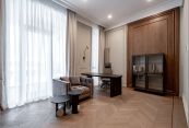 Второй этаж: две мастер-спальни с гардеробными и санузлами, три спальни, кабинет, санузел.