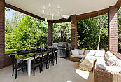 Дополнительно на участке расположен гостевой дом 232 м2 с приватной SPA-зоной с отдельным входом, гаражом для 2-х автомобилей и садовой техники и апартаментами для персонала на втором этаже.