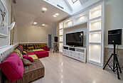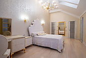 третий этаж: спальня, санузел с ванной и инфракрасной сауной, верхняя гостиная с ТВ-зоной, мастерская.