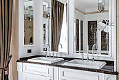 Цокольный этаж: галерея для экспозиции и хранения предметов искусства и коллекционирования, спортзал, кинотеатр, винная комната, кладовая, котельная с отдельным входом для персонала.