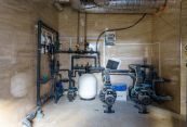 Цокольный этаж - холл, бассейн, хамам, с/у, сауна, котельная, винная комната.