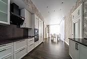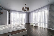 В доме просторная светлая гостиная - столовая с камином и выходом из столовой на террасу. Панорамное остекление создает ощущение дополнительного пространства и света. В доме установлены система кондиционирования и система теплого пола на всех этажах. СПА-зона с сауной и комнатой отдыха расположена на цокольном этаже.