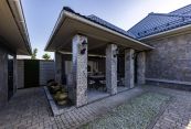 Помимо основного дома, на участке расположен гостевой дом, а также навес для автомобилей с подсобными помещениями. Выполнен ландшафтный дизайн, сделана дренажная система, высажено большое количество кустарников и хвойных деревьев.