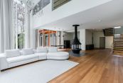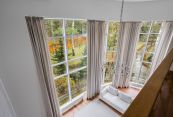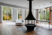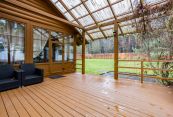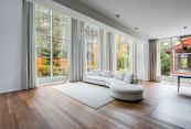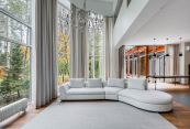 В доме все готово для постоянного проживания. Из больших панорамных окон гостиной открывается вид на ухоженный участок, богатый зеленой роскошью.