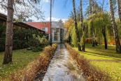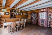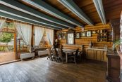 На участке построена баня с дубовой бочкой, кухней с зоной отдыха и санузлом. Дополнительно сделан гараж для машины, на втором этаже спальня, кухня, санузел для персонала. На придомовой территории навес для трех автомобилей.