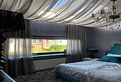 Второй этаж спроектирован для уединённого отдыха. Здесь расположена мастер-спальня с собственной ванной комнатой и гардеробной, а также детский блок с двумя спальнями и вместительной гардеробной.