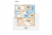 Первый этаж: прихожая, кухня-столовая, гостиная, гостевой с/у, спальня с гардеробной и ванной комнатой, постирочная, терраса.