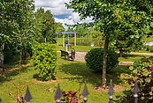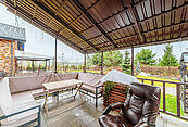 Участок, на котором расположен дом, имеет правильную прямоугольную форму и площадь 6 соток. Выполнен полный ландшафтный дизайн и озеленение: здесь растут селекционные плодовые деревья и кустарники, а аккуратно подстриженный газон и туи создают атмосферу уюта и спокойствия. Для отдыха на свежем воздухе предусмотрено патио с зоной BBQ. Дорожки на вымощены брусчаткой, выполнено освещение и авто-полив. Важно отметить удобную парковку, способную вместить до четырех автомобилей. Въезд на участок оснащен автоматическими воротами для максимального комфорта.